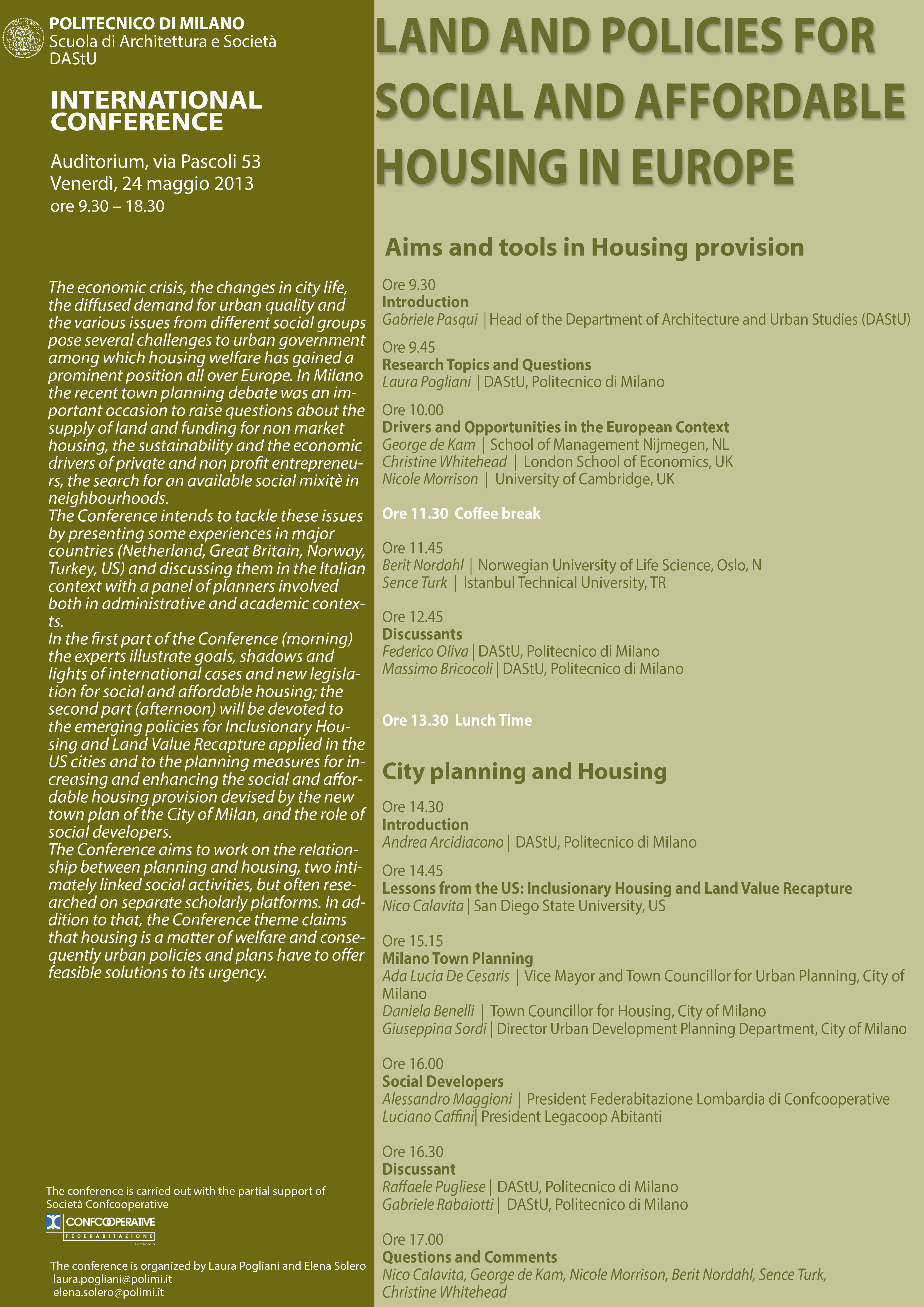 Land and Policies for Social and Affordable Housing in Europe INTERNATIONAL CONFERENCE