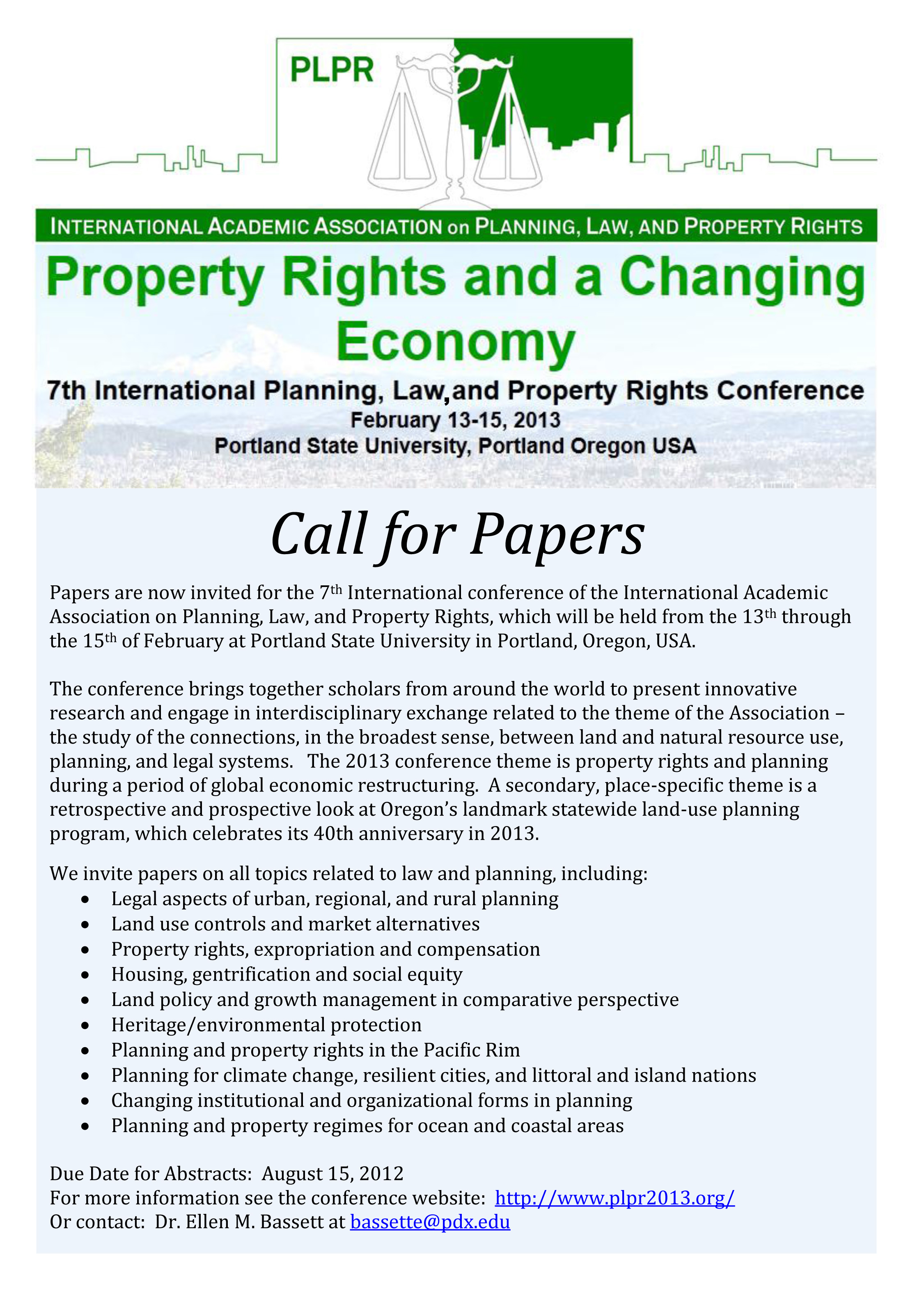 Abstracts should be submitted by email no later than August 15, 2012, by E-mail: PLPR2013@pdx.edu